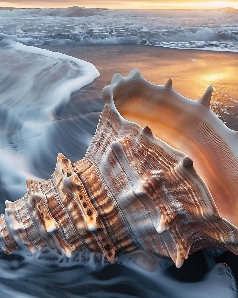 De romantiek van schelpen bij zonsondergang