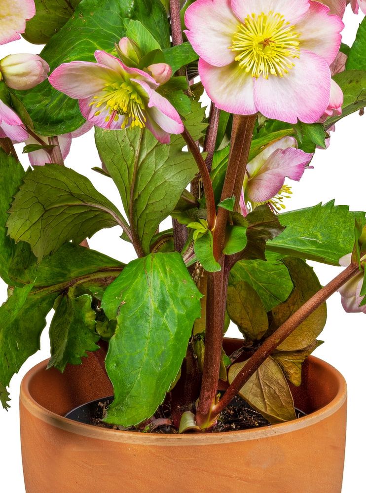 De roos van Kerstmis in bloempot op witte achtergrond