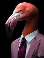 Een fascinerende verbinding tussen de natuurlijke elegantie van een flamingo en de zakenwereld wordt gecreëerd in dit buitengewone kunstwerk. De vogel presenteert zich als een perfecte heer wiens natuurlijke schoonheid wordt benadrukt door de zorgvuldig gekozen garderobe. Het kleurenpalet beweegt harmonieus tussen verschillende tinten roze en rood en creëert een warme en uitnodigende sfeer.