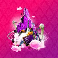 De roze stad van de zwanen. Een prachtige plek in de wereld van de witte zwanen. Door de sterke roze kleur en de kwachtige woorden springt dit digitale kunstwerk er echt uit op een muur!