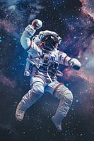 Dit dynamische kunstwerk toont een astronaut die in de ruimte zweeft in een krachtige bokshouding. De astronaut in het ruimtepak lijkt klaar om de uitgestrektheid van het sterrenstelsel te veroveren terwijl hij poseert te midden van fonkelende sterren en planeten. De combinatie van sport en ruimtevaart geeft dit beeld een unieke en krachtige energie die een geest van ontdekking en assertiviteit symboliseert. De oogverblindende kleuren en precieze details van het pak trekken de kijker mee in een wereld van avontuur en oneindigheid. Perfect voor fans van astronomie en sport die op zoek zijn naar een inspirerend en energiek stuk.