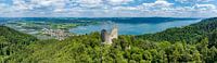 Luchtfoto van het Bodenmeer met de kasteelruïne Altbodman met de Bodensee-gemeente Bodman-Ludwigshafen