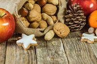 Koop de foto De samenstelling van het Kerstmisvoedsel op houten lijst van Alex Winter op canvas, aluminium dibond, (ingelijste) fotoprint, behang en ArtFrame, op maat geprint in Fine-Art kwaliteit.