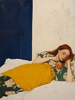 "De schone slaapster". Een portret in warme kleuren met een klassiek tintje door het kleurgebruik. Een bijzondere blikvanger voor ieder interieur!