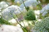 Wilde peen in een zomerweide in de verschillende bloeistadia.