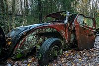 Nu liggen de wrakken onder een laag mos, omgevallen bomen of gewoon op elkaar. Soms vier of vijf hoog op elkaar gestapeld, maar niet voor lang. De zwaartekracht trekt de auto’s naar zich toe. Het autokerkhof lijkt zo een decor uit één van de boeken van Stephen King.