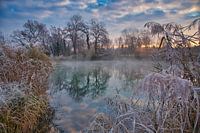 Bevroren winterochtend in Rhinau in de Grand Ried in de Elzas