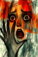 The Scream Within legt een intense, emotionele kracht vast. De afbeelding toont een jonge vrouw in een moment van pure wanhoop. Haar ogen staan wijd open van angst, haar mond gesperd in een grimmige schreeuw. De heftige, ruwe lijnen van haar gezicht en hand, met de dramatische kleuren van rood en zwart, versterken de kracht van haar…