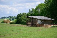 Rijden door het vriendelijke platteland in de provincie Limburg, Nederland. Overal zie je koeien en hun pasgeboren kalfjes.