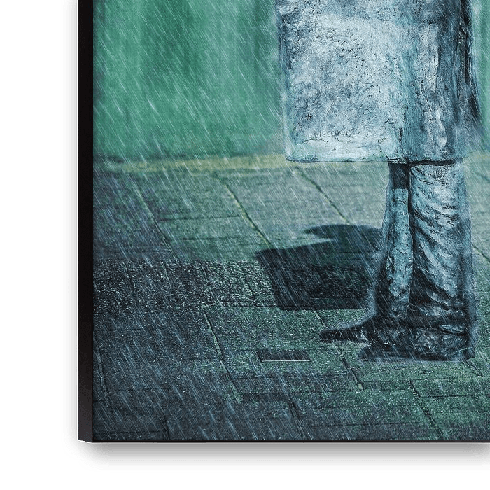 Digitale fotobewerking van het bronzen beeld "De man met de sigaret", in de volksmond "De sigarettenman", gemaakt door kunstenaar Herman Bisschop, welke in 1985 is geplaatst op de Boulevard Evertsen in Vlissingen (Zeeland).