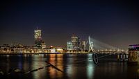 De Erasmusbrug in de prachtige skyline van Rotterdam aan de Maas. In de avond aan een prachtige sterrenhemel op een koude avond in februari.