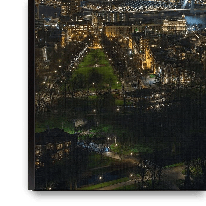 De achtergrond toont de Erasmusbrug en De Hef met natuurlijk De Maas die de stad door midden deelt.…