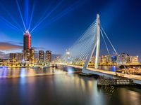 Toen de bouw van de Zalmhaventoren was afgerond werd dit gevierd met een lichtshow. Dit vormde een perfecte aanvulling op de prachtige skyline van Rotterdam met de Erasmusbrug. Gemaakt door Ellen van den Doel.