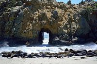 Koop de foto De sleutelgatboog op Pfeiffer Beach van Frank's Awesome Travels als print op canvas, aluminium dibond, (ingelijste) fotoprint, behang en ArtFrame. Voor jou op maat geprint in Fine-Art kwaliteit.