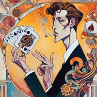 Uitgemergeld en overwerkt. Getekend door de ongezonde levensstijl die gokverslaving met zich meebrengt. Maar deze nacht duurt ook lang. Uiteindelijk heeft hij een royal flush in zijn hand, wat gemakkelijk te herkennen is.