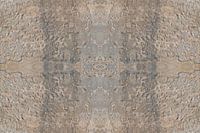 Close-up van een rotsstructuur die een abstract patroon creëert door reflectie en symmetrie.