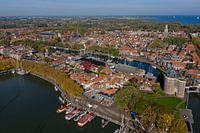 Een foto van hoogte gemaakt van de stad Enkhuizen.