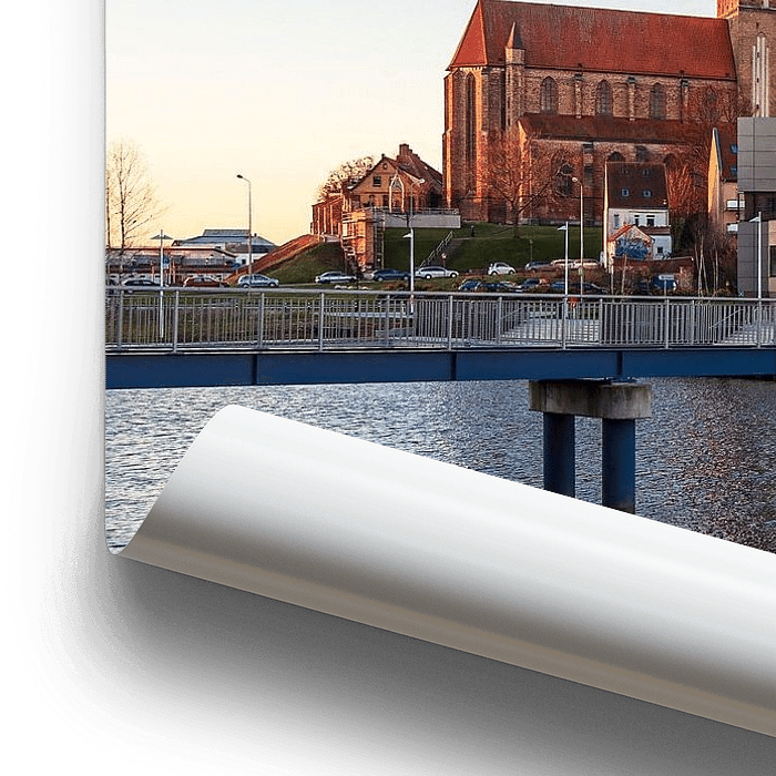 Koop de foto De stadshaven in de vroege ochtend in de Hanzestad Rostock van Rico Ködder op canvas, aluminium dibond, (ingelijste) fotoprint, behang en ArtFrame, op maat geprint in Fine-Art kwaliteit.