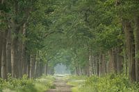 bospad in het groen. De statige bomen langs de laan maken een sfeervol beeld