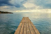 De steiger waar vanaf je een frisse duik kunt nemen in het Meer van Ohrid in Macedonië.