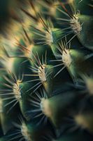 Het majestueuze oppervlak van een cactus presenteert zich als een stekelig schild dat zich heeft gespecialiseerd in het overleven in de woestijn. De sterke, groene wallen zijn bezaaid met stijve, expressieve stekels die zowel bescherming als een vleugje gratie bieden. Een fascinerend spel van licht en schaduw omlijst het landschap van de natuur.