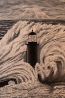 Dit olieverfschilderij op doek toont een vuurtoren omringd door enorme golven. Een prachtig natuurspektakel. Het schilderij is in zwart-wit geschilderd met olieverf en daarna gedigitaliseerd.
