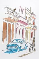 Koop dit schilderij De straten van Havana (vrolijk abstract aquarel schilderij huizen Cuba balkon fiets oldtimer reizen) van Natalie Bruns als reproductie geprint op canvas, aluminium dibond, (ingelijste) fotoprint, behang en ArtFrame. Voor jou op maat geprint in Fine-Art kwaliteit.