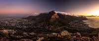 Panorama van de Tafelberg in Kaapstad in Zuid Afrika bij zonsondergang gezien vanaf Lion's Head.