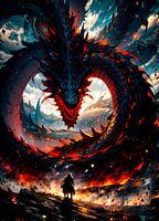 Een eenzame krijger staat tegenover de kolossale woede van een vuurspuwende draak in een strijd tussen lot en ondergang. Een onstuitbare kracht ontmoet onwankelbare moed. In dit dramatische fantasy-kunstwerk staat een eenzame figuur tegenover een titanische draak, waarvan de schubben branden van gesmolten vuur en schaduwen. De scène vangt de rauwe essentie van mythe en legende - de eeuwige botsing tussen held en beest. Perfect voor fans van fantasy-epos, drakenoverlevering en verhalen met een hoge inzet.
