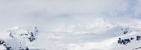 Op deze foto is de top van een gletsjer te zien. De gletsjer is gelegen tussen twee bergen.