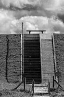 Een trap leidt naar de dijk in Oost-Friesland en geeft de indruk dat gaat rechtstreeks naar de hemel