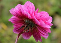 De druppels onder het hart maken dat het lijkt alsof de dahlia treurt. Misschien omdat de zomer weer voorbij is als hij in bloei staat? Ik geniet in ieder geval altijd van zijn mooie bloem.