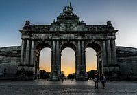 De statige triomfbogen van het jubelpark in Brussel. Bij valavond heeft het nog iets extra. je ziet de silhouetten van de mensen door de reusachtige bogen lopen en bedenkt er zelf een verhaal bij.