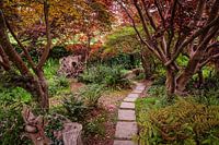 Engelse tuin bij Hertsmonceux Castle in East Sussex.
