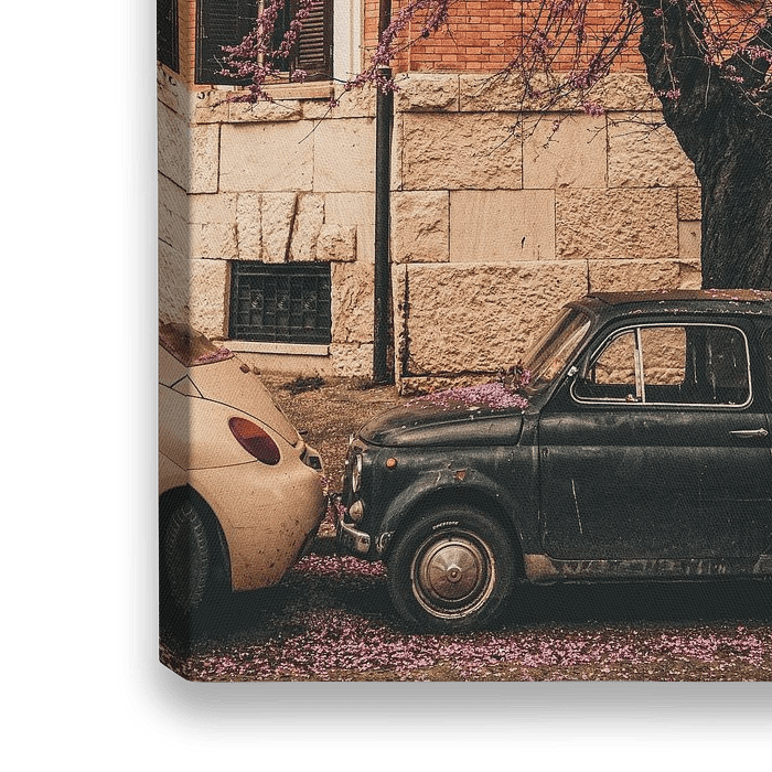 Er is iets aan dit tafereel dat me deed stilstaan. Een stoffige kleine Fiat 500 - versleten, bekrast, maar nog steeds vol karakter - onder een boom die net begint te bloeien. De grond ligt bezaaid met roze bloemblaadjes, alsof de natuur besloten heeft een stil feestje te geven zonder het aan iemand te vertellen. Ik had deze foto niet…