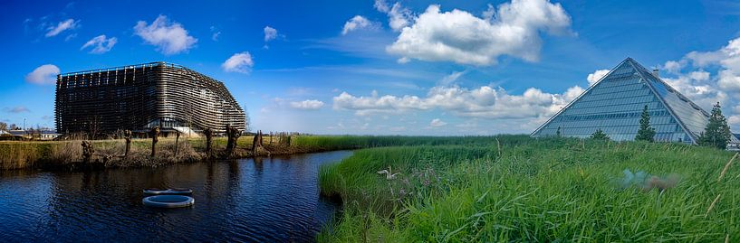 Twee samengevoegde foto's van Leeuwarden waarbij het middenstukje door AI is getoverd.