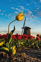 Nederlandse elementen in één blik te vangen. De tulp en de molen bij schermerhorn. In de vroege ochtend met een stralende zonsopgang deze weten vast te leggen