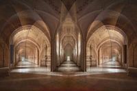 Een creatieve samenvoeging en bewerking van foto's van een verlaten en vervallen Jezuïetenklooster.