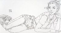 In de tekening werd elke lijn één keer met een krachtige haal op China-papier getrokken, zonder enige voorafgaande tekening. Elke delicate bocht van de lijn moest in één keer lukken. Dit is een uitdaging, vooral met het gezicht. Dit geldt voor de kinboog, de mond, de ogen en de neus.