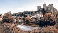 Het kasteel van Runkel als panorama met Lahn en vliegvissers.