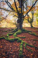 Deze diepgewortelde Ent met zijn lange uitgestrekte wortels houdt al verschillende eeuwen de wacht in een klein bosje in Duitsland. Terwijl zijn wortels eeuwig groen blijven, veranderen zijn bladeren van tijd tot tijd.