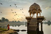 Koop dit vogel kunstwerk De vroege ochtend van Lake Gadisar van Paula Romein op canvas, aluminium dibond, (ingelijste) fotoprint, behang en ArtFrame, op maat geprint in Fine-Art kwaliteit.