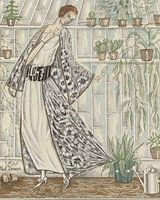 Over ‘De vrouw en haar planten | cactus, broeikas, mode | Vintage Art Deco Advertentie’ van NOONY