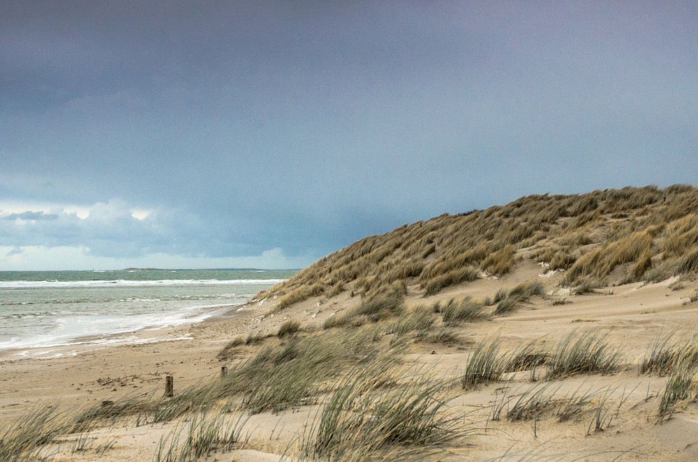 Gefotografeerd in de winter van 2017, vol in de wind en tussen het helmgras.
