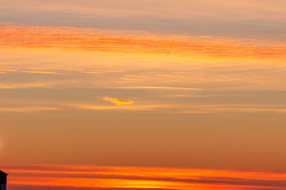 De zon is in aantocht, de lucht laat alle kleuren van de regenboog al zien. Het is ijskoud, vooral door de harde wind die over Marken waait. Even van genieten, voor je het weet is de zon tevoorschijn gekomen.