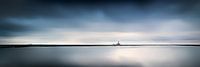 Vuurtoren van Westerhever bij Sankt Peter Ording aan de Noordzee in Noord-Duitsland op het blauwe uur met een mooie bewolkte hemel en een kalme en zachte indruk. Panorama Landschap 310115ays