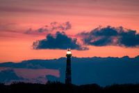 De vuurtoren van Ameland (Waddeneiland) na zonsondergang. (Bornrif)