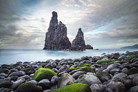 Genomen vanaf het rotsstrand vanuit een lage hoek geeft de foto een uniek perspectief op de ruige schoonheid van deze reuzen Ilheus da Janela. Doordat de keien op de voorgrond tijdens hoogtij onder…
