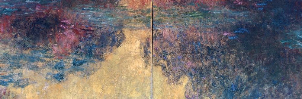 Claude Monet schilderde heel wat schilderijen van waterlelies. Deze is een van de grootste. Ongeveer 6 meter breed en geschilderd over 2 grote doeken. Dit associeert dit schilderij als een raam.