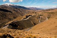 Slingerend van de laagvlakte gaat de weg over in het gebergte. Van een groene vlakte op weg naar de met sneeuw bedekte toppen. De weg vormt de verbinding tussen ontelbare kleine dorpen en de grote stad.